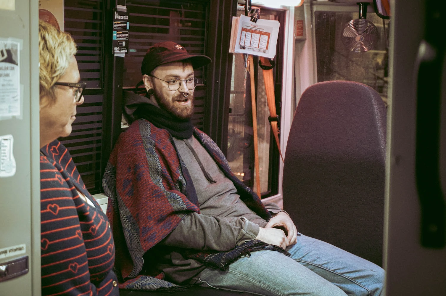 Ce matin, un sentiment profond m’envahit : cet autobus est une véritable oasis qui carbure à la bienveillance. Le lien de confiance avec les intervenants est fort et les usagers semblent y trouver un refuge, loin du jugement, où ils sont libres d’exister simplement.