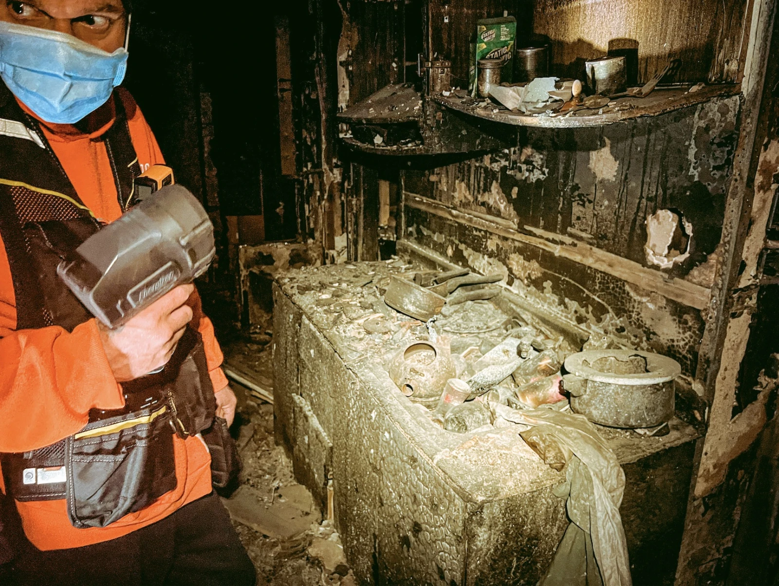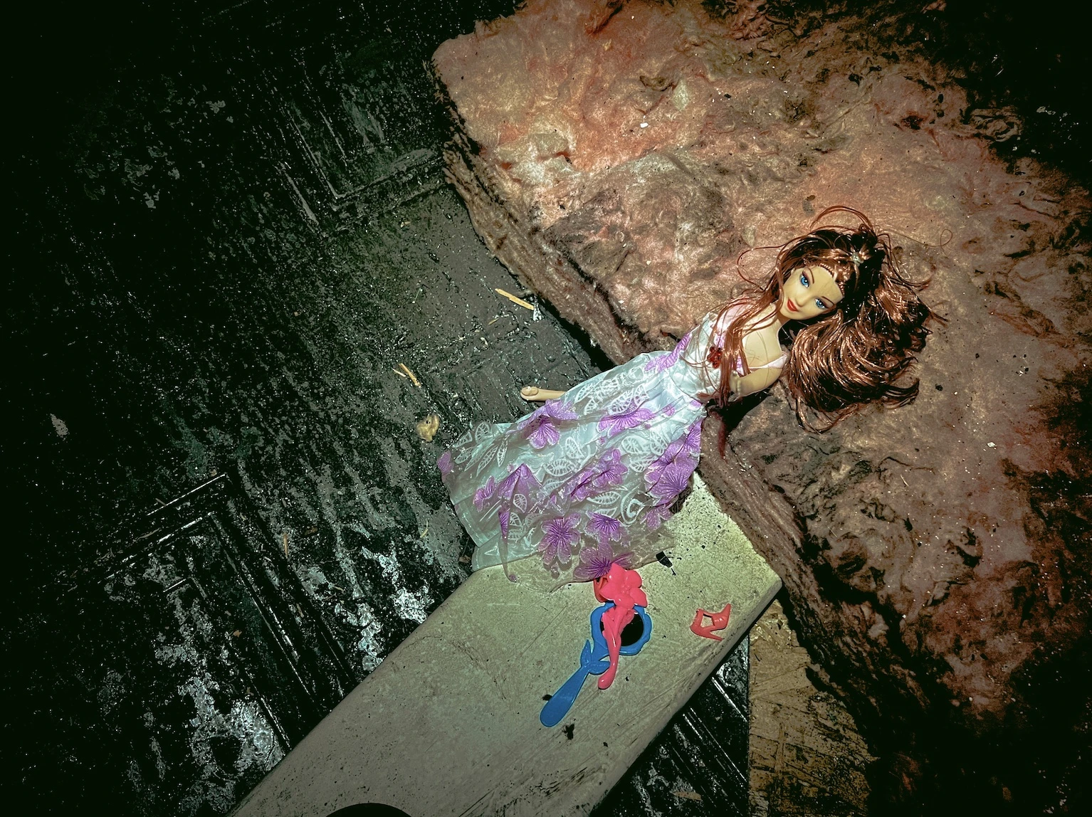 Dans les détritus qui tapissent nos pas, je trouve une tente d’enfant et une poupée Barbie ayant survécu aux flammes. « Les entités aiment bien les cadres, les poupées, posséder des vêtements. Ils sont attachés aux objets. Ils voyagent, mais ils reviennent toujours à leur lieu de décès », m’enseigne Nick.