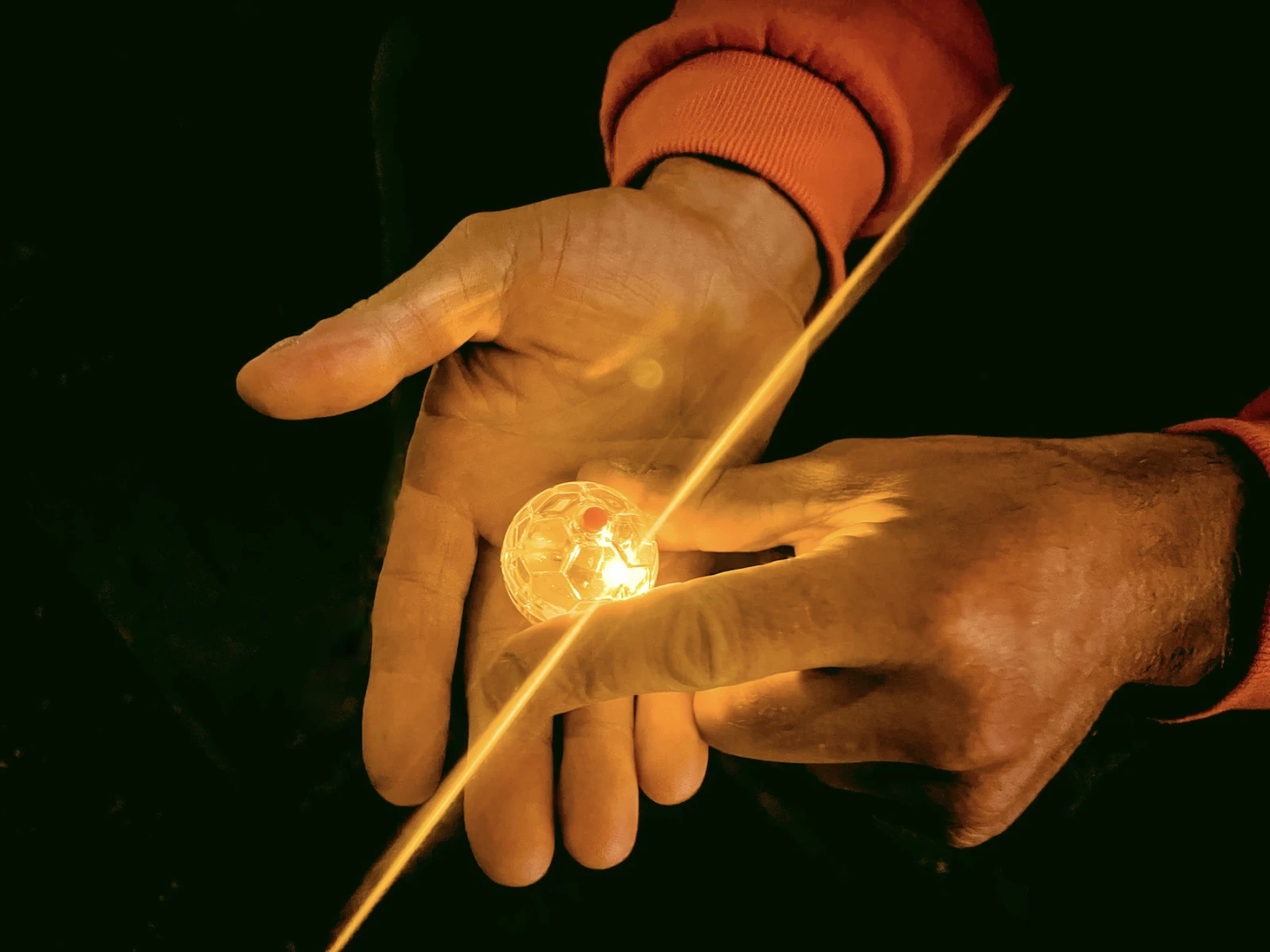 Au sommet des escaliers en ruines, Nick sort un jouet pour chat qu’il utilise comme une « boule à esprit ». Il le garde soigneusement dans une petite poche multicolore, lui conférant une aura de mystère, puis place la boule sur une petite assiette posée au sol. Cette balle s’allume lorsque des mouvements sont détectés; si un esprit est présent, il est donc fort possible qu’elle s’active.