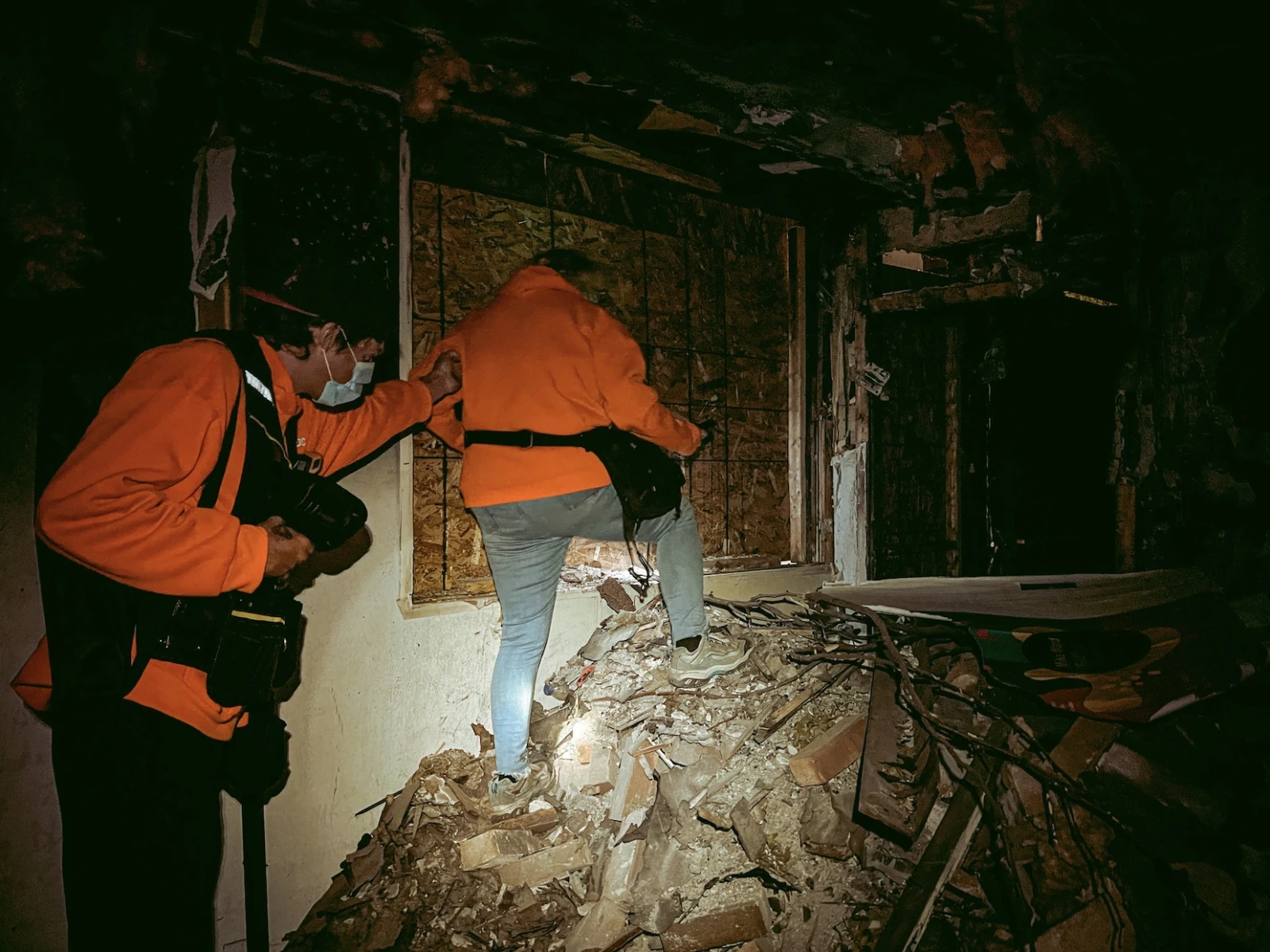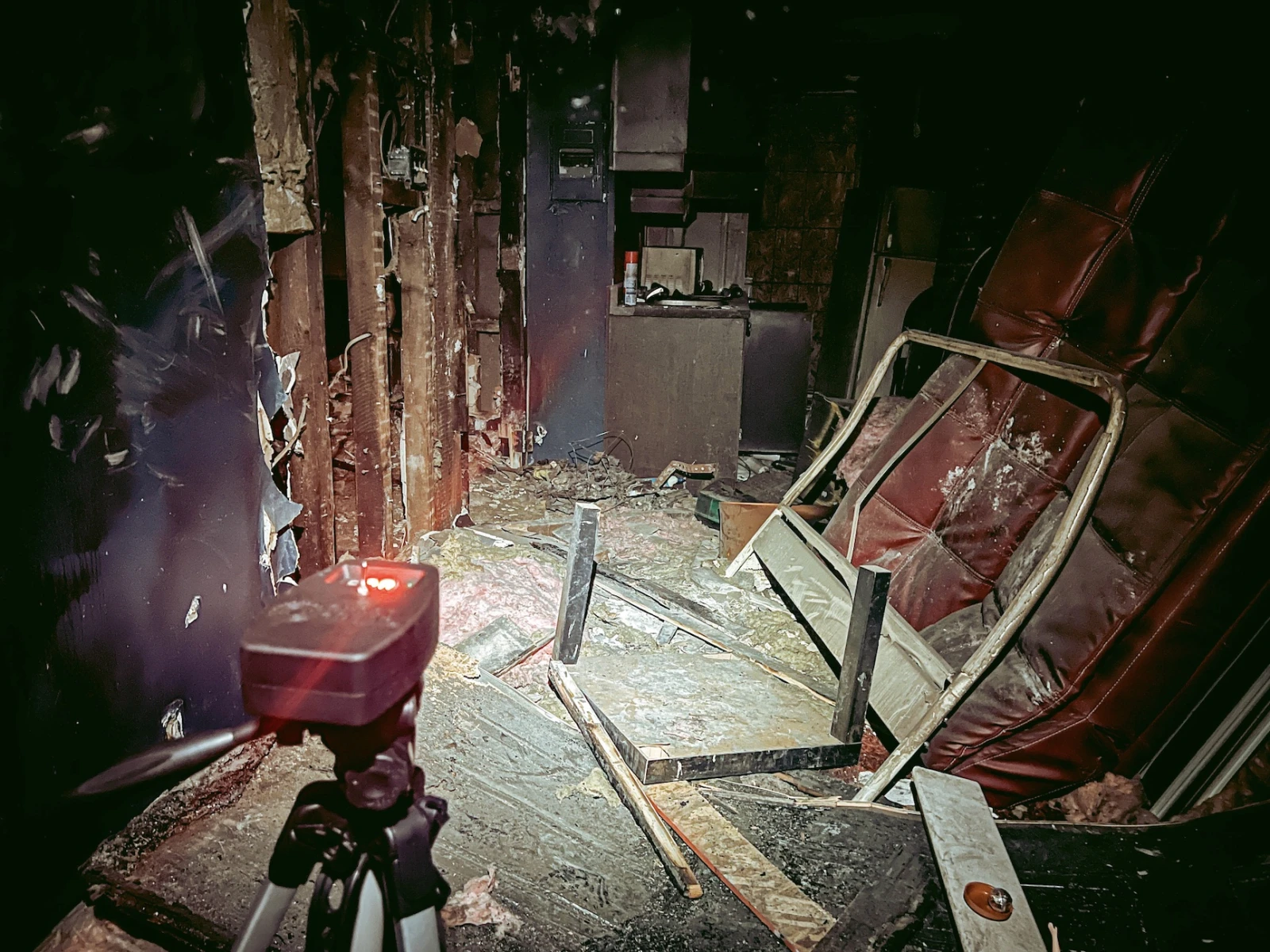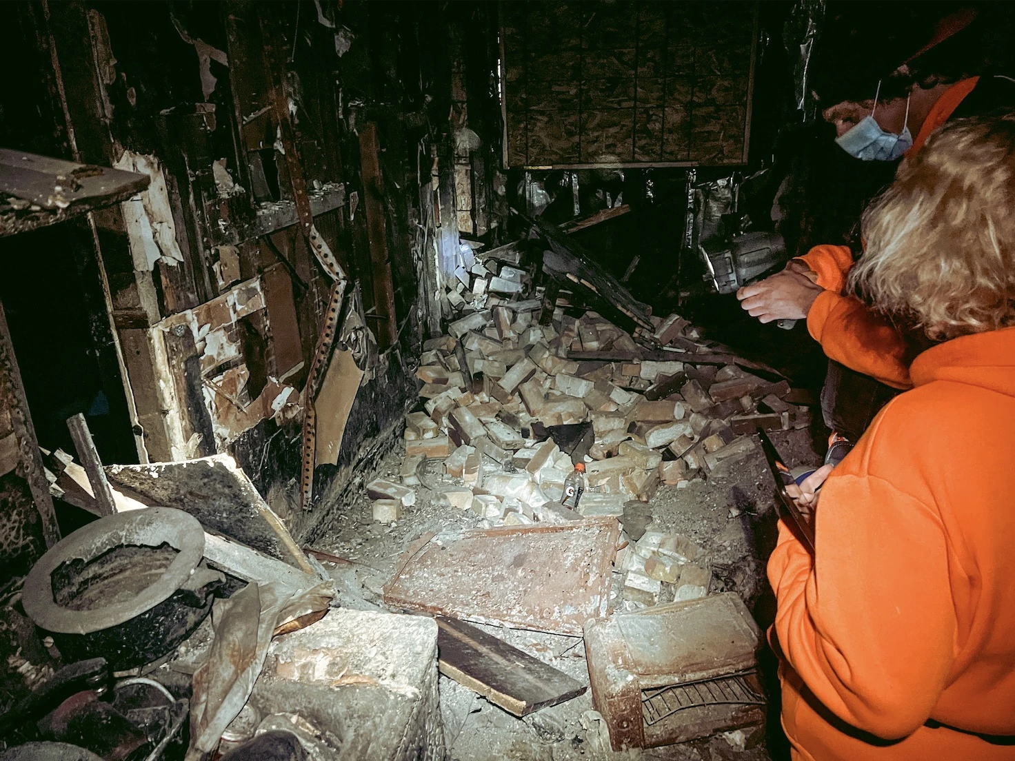 Le couple avoue être de grands habitués des endroits qui donnent la chair de poule. « Il suffit juste de faire attention où l’on met les pieds », me conseille Sylvie. En effet; le 5 et demi se trouve dans un grave état de désolation. Il ne reste que la charpente en bois calcinée et, au sol, un tapis de débris cachant les trous.