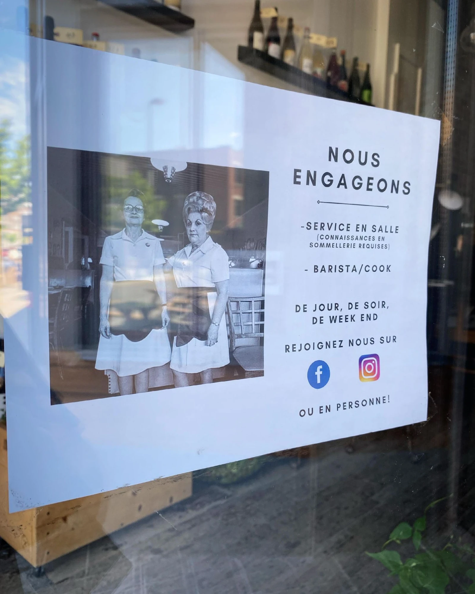En plus, j’ai seulement ciblé les endroits qui affichent une offre d’emploi dans la vitrine. Possible que certains endroits tentent plutôt de recruter du personnel par le truchement des réseaux sociaux ou sur des pages comme Staff de bar & resto Montréal (l’un n’empêche pas l’autre).