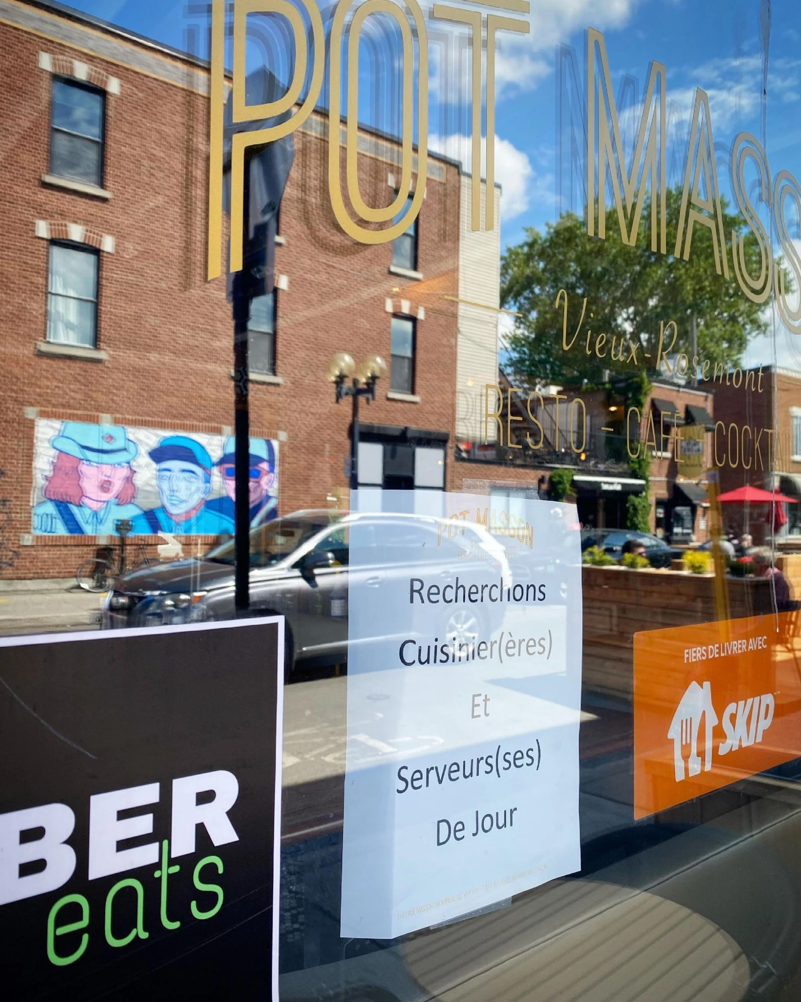 J’ai fait un premier arrêt au populaire restaurant Pot-Masson, où on cherche un.e cuisinier.ère et un serveur.euse. «Le problème, c’est dans les cuisines, parce que dès qu’on met une affiche ou une annonce sur les réseaux sociaux, on reçoit plein de cv pour le plancher», constate l’assistant-gérant Mathieu Boulanger, dont l’établissement est néanmoins capable de fonctionner dans les circonstances. «On a du staff qui fait beaucoup d’heures, mais ça ne nuit pas aux opérations», résume-t-il, pendant que plusieurs clients profitent du soleil sur la terrasse un lundi après-midi.