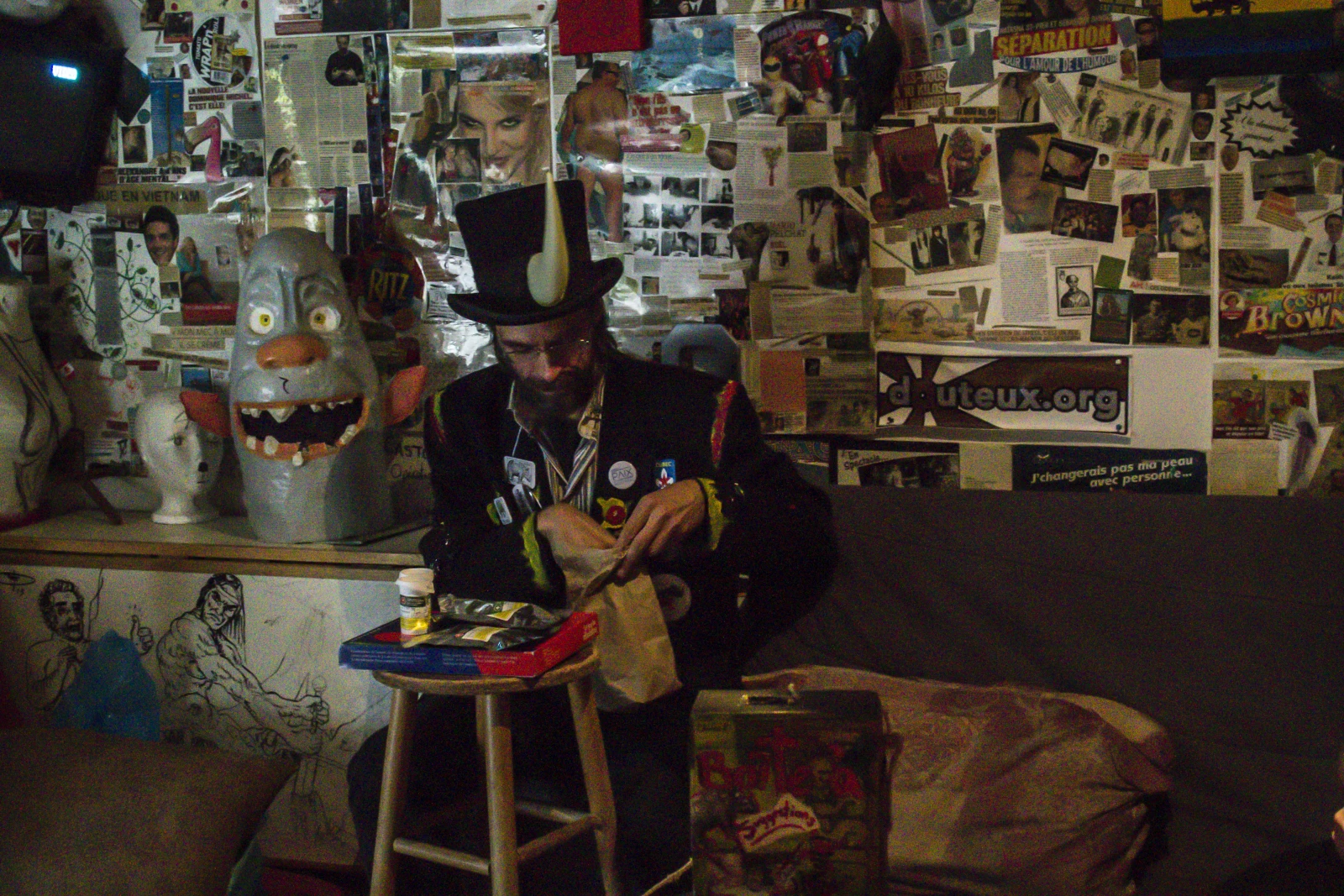 Bien que ce parti (et cet appartement) semble chaotique, il y a un raisonnement derrière cette promesse d’absurdité. Avant ma visite, j’avais passé un coup de fil au musée pour prendre quelques informations. « Il y a toujours eu une vague de pouvoir qui fonctionne par l’humour » m’avait alors expliqué Tommy Gaudet, en donnant l’exemple du fou du roi qui, au Moyen Âge, était le seul à pouvoir critiquer le roi par rapport à son odeur.