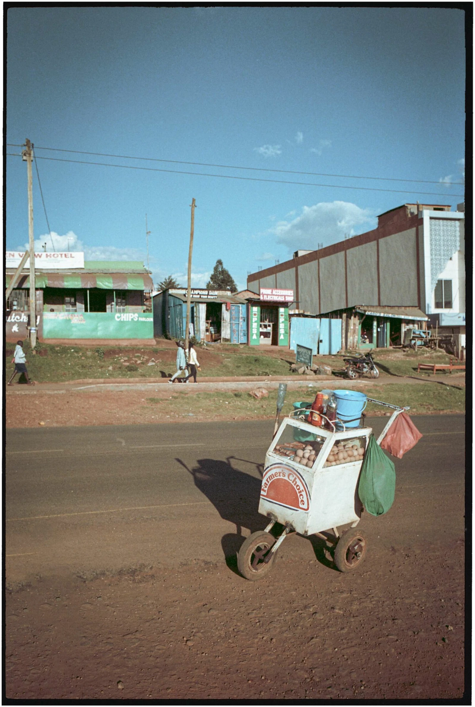 Le centre d’Iten est le lieu d’échanges économiques importants. Entre les cireurs de chaussures et les vendeurs de sardines séchées, quelques Massaïs errent, loin de leurs traditions, avec des souvenirs au cou, à la recherche des touristes absents.