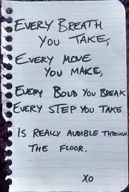 Aussi, donnez donc à vos voisins le bénéfice du doute. Il se peut très bien qu’ils ne soient pas au courant qu’on entend leur coups de bassin comme s’ils nous étaient chuchotés à l’oreille.
