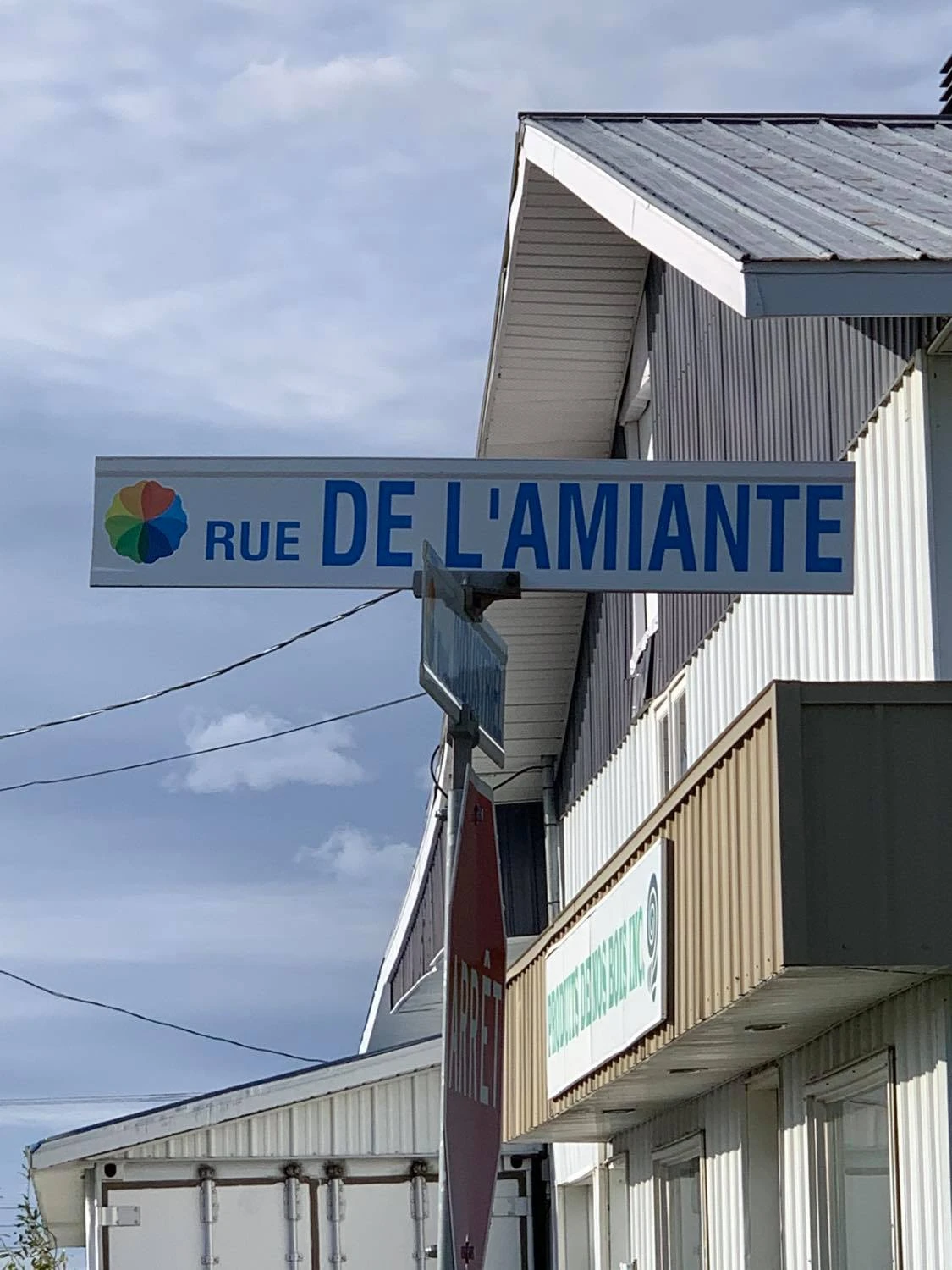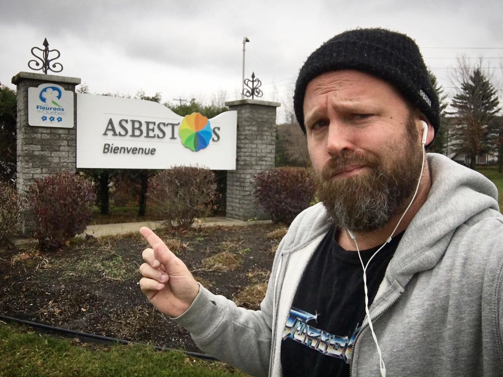 « Asbestos bienvenue », peut-on lire en gros sur l’enseigne à l’entrée de la ville, depuis la route 255.