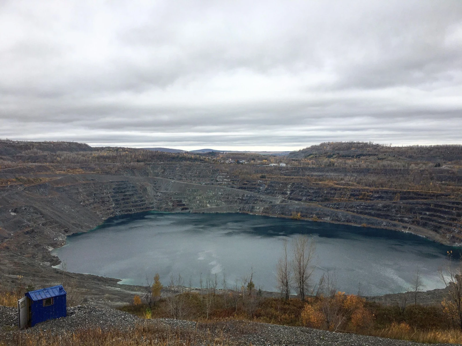 Il fait froid en ce mardi matin nuageux. Un vent sec et glacial claque au visage. Au bout du boulevard Saint-Luc, après avoir croisé l’emblématique camion de 200 tonnes garé en face du bar sportif Capi10 (!?!), on débouche sur la spectaculaire mine Jeffrey, un cratère de 700 mètres de largeur par 450 mètres de profond.