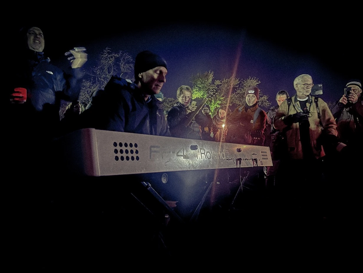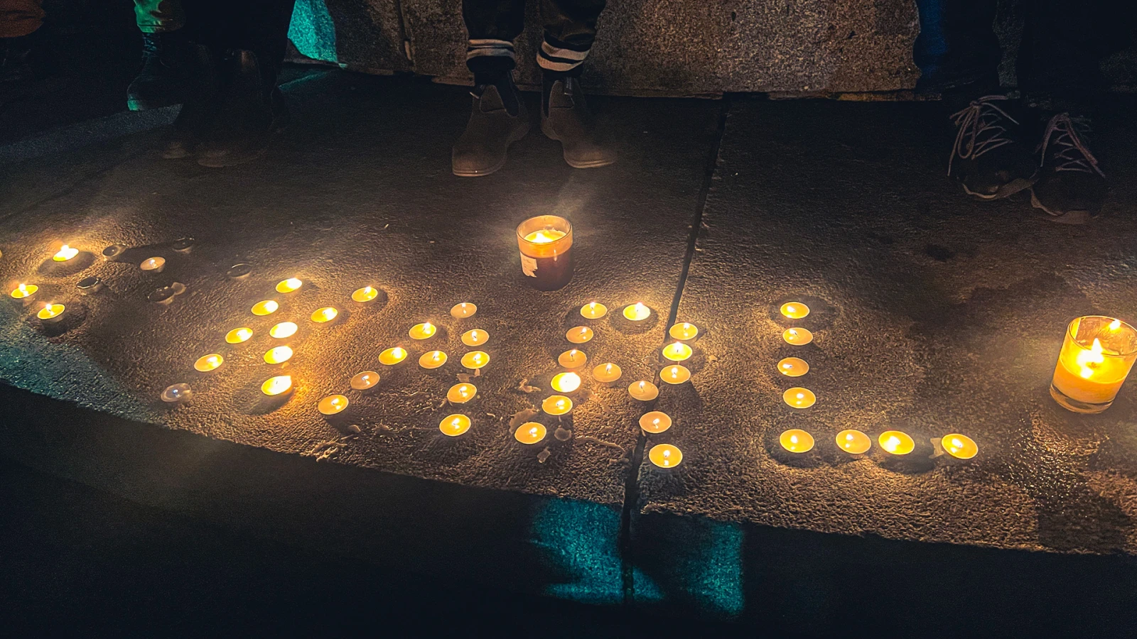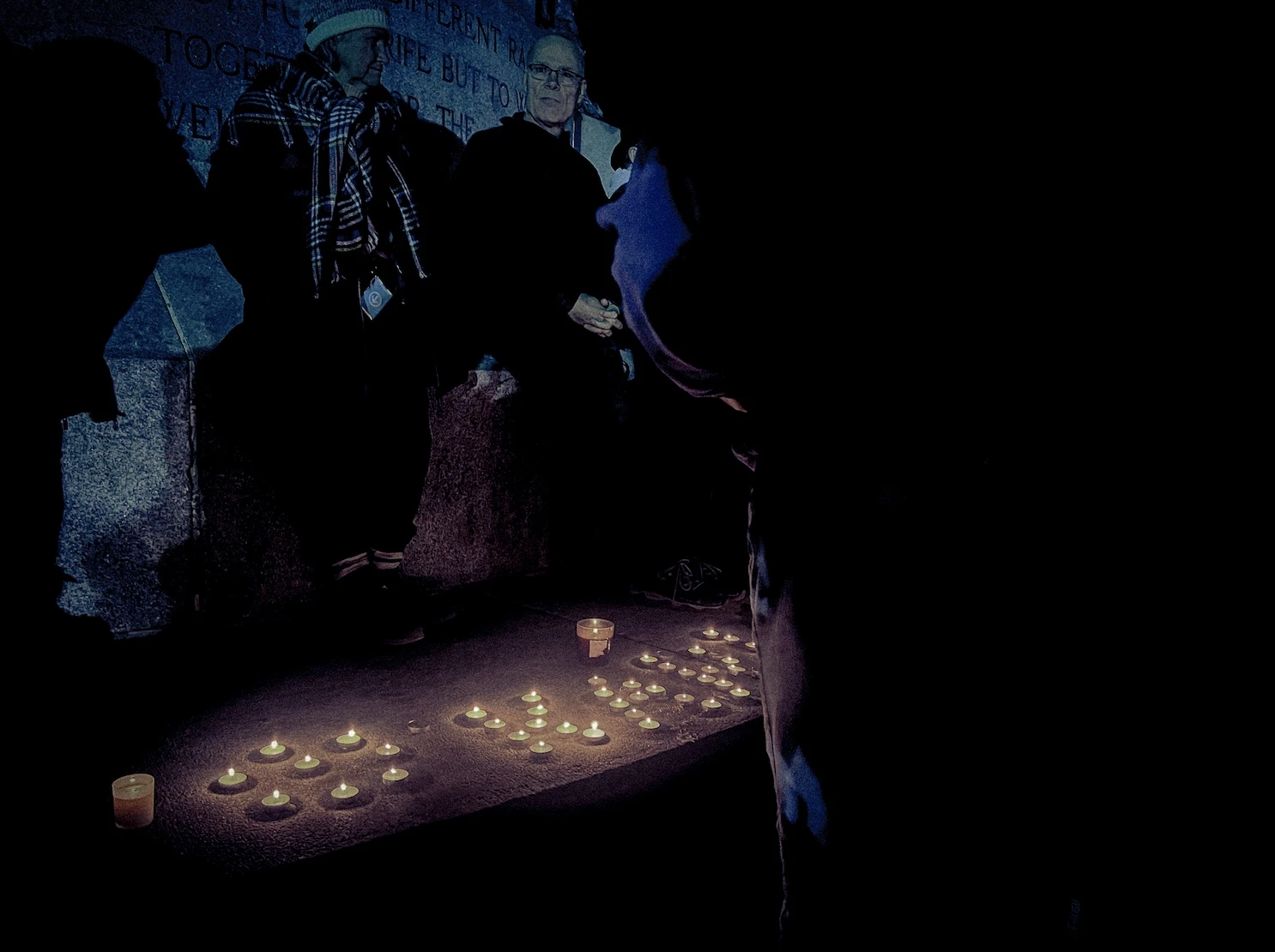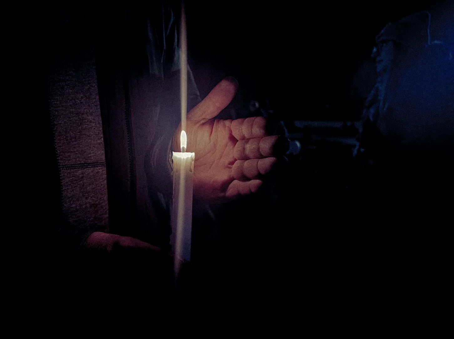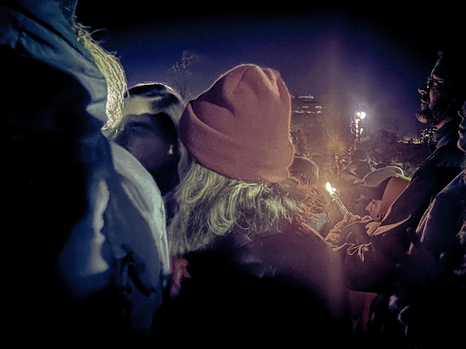 Un aîné distribue des lampions pendant qu’une femme aux cheveux en dreadlocks s’en sert pour s’allumer un joint. La foule autour du groupe improvisé ne cesse de croître. On tente de repérer le pic du guitariste à l’aide des bougies. Un père entame un solo d’harmonica, tout en tenant son enfant avec sa main libre.