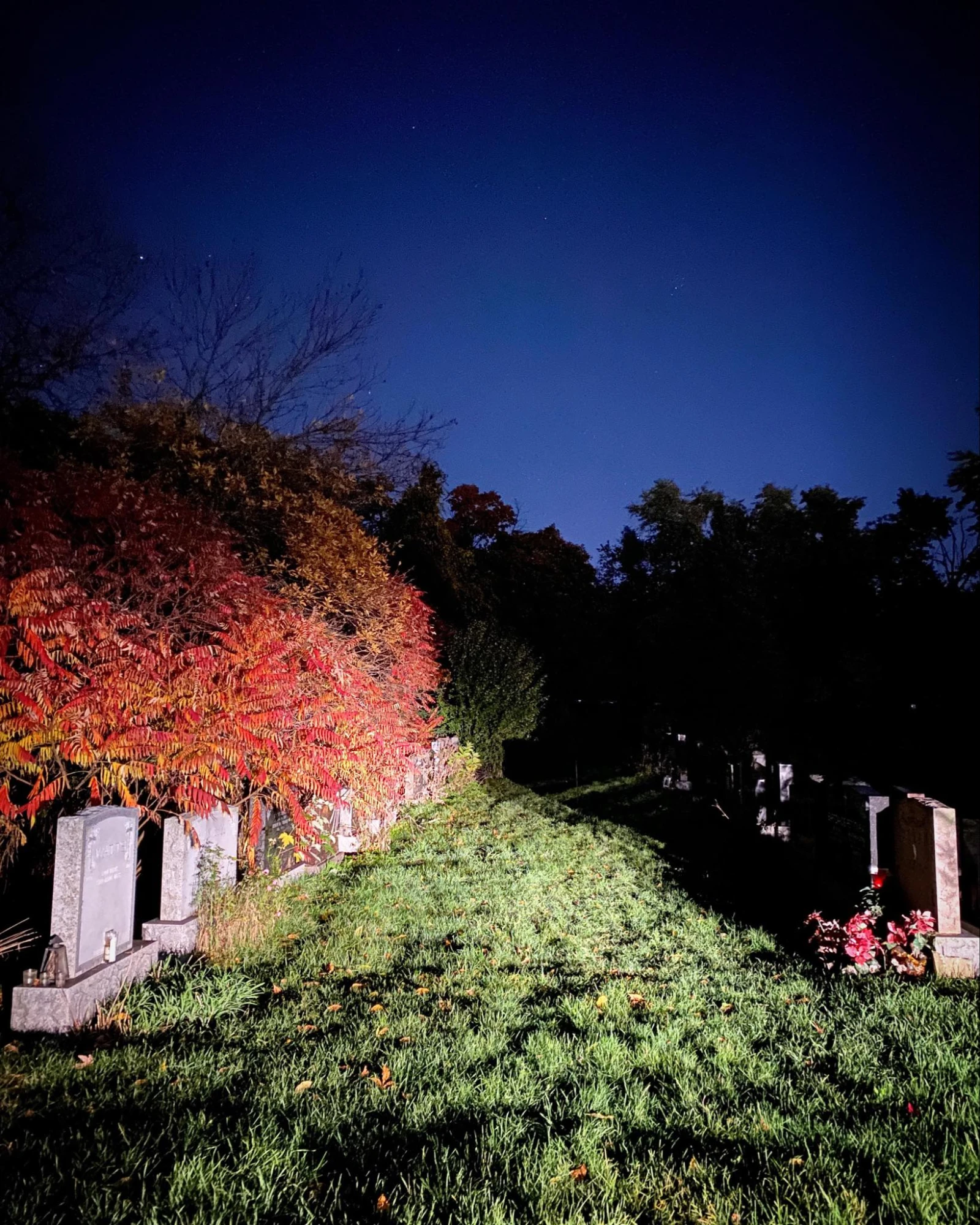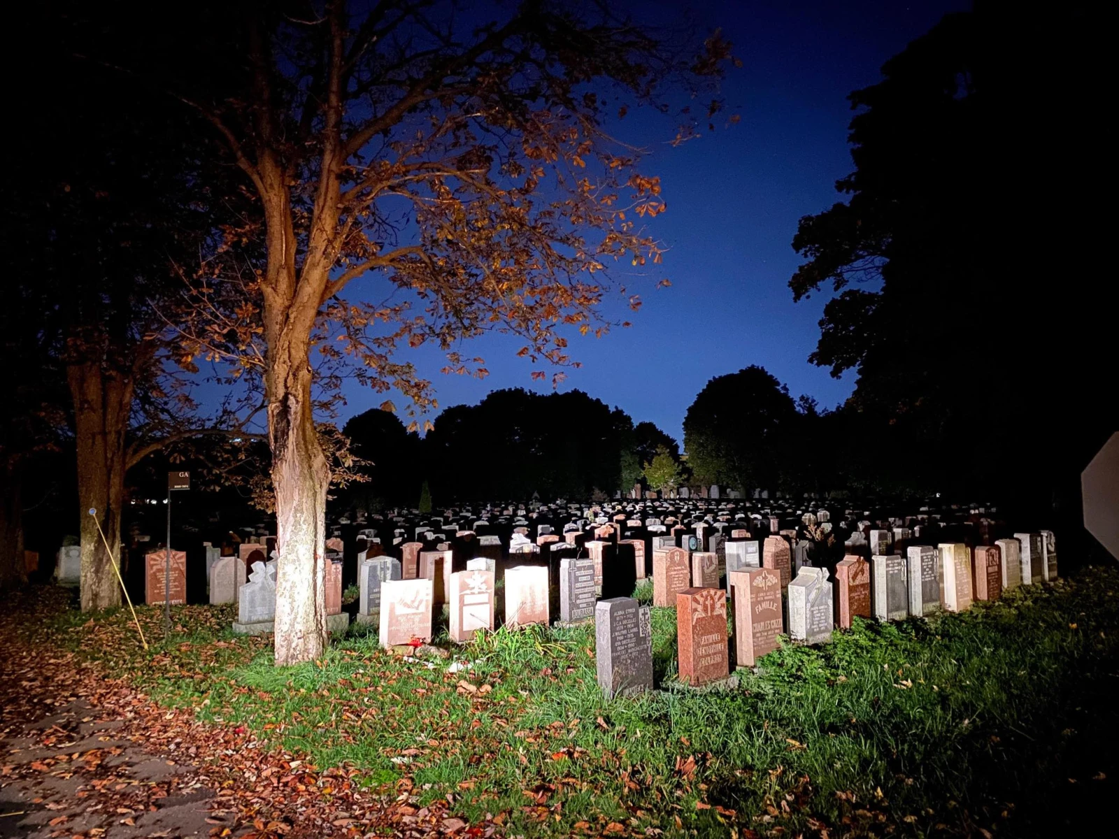 Pas grave, c’est déjà une expérience unique d’arpenter les sentiers du grand cimetière en pleine nuit. Une expérience que bien peu de gens ont la chance de vivre en plus, puisque le cimetière ferme ses portes au public à 17h.