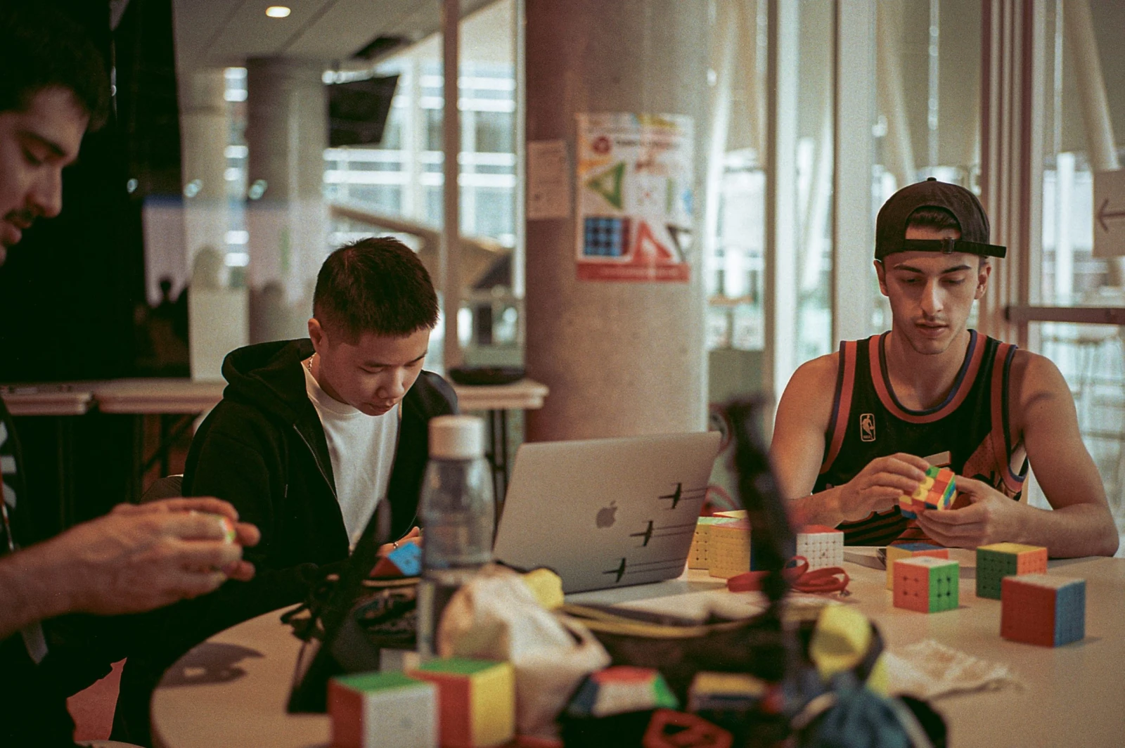 Si le cube peut a priori sembler être une pratique solitaire réservée aux introverti.e.s, les compétitions, elles, sont une grande cour de récréation où tout le monde est dans la même gang. Un petit côté geek assumé y règne, mais on retrouve une communauté bourdonnante bien plus solidaire que compétitive. Les vétéran.e.s enseignent aux plus jeunes. On parle de stratégie, on échange des cubes inusités et on se conseille de nouveaux algorithmes.