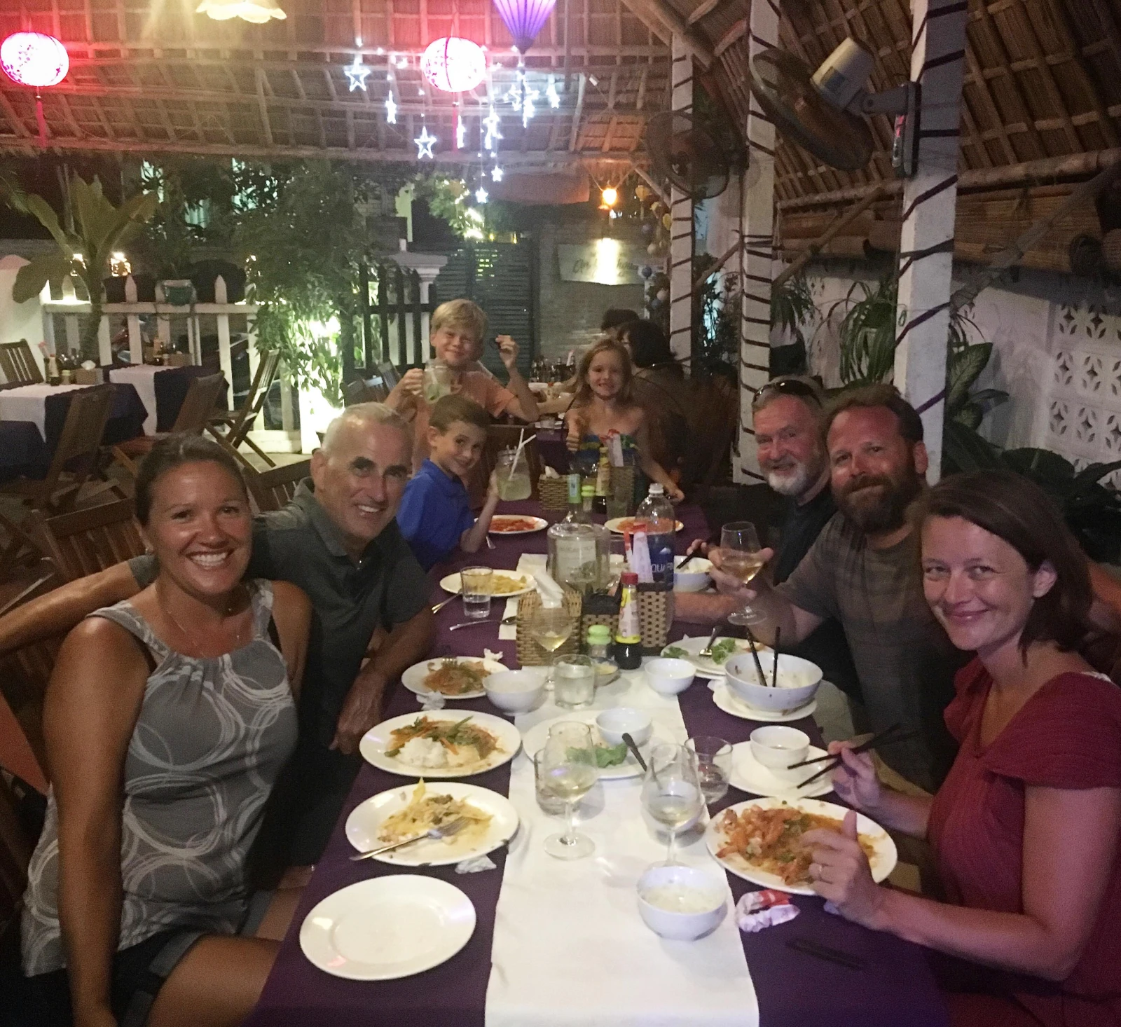 Ce fut le cas à notre hôtel d’Hoi An, la destination qui a suivi Hué et probablement la plus mignonne ville du monde (va googler si tu ne me crois pas). Jocelyn, Natasha et leur fils Thomas, des gens de Boucherville, déjeunaient à la table voisine de notre guesthouse. Comme nous, ils voyagent durant sept mois et sont aussi sympathiques que Patrice Lécuyer devant la caméra.