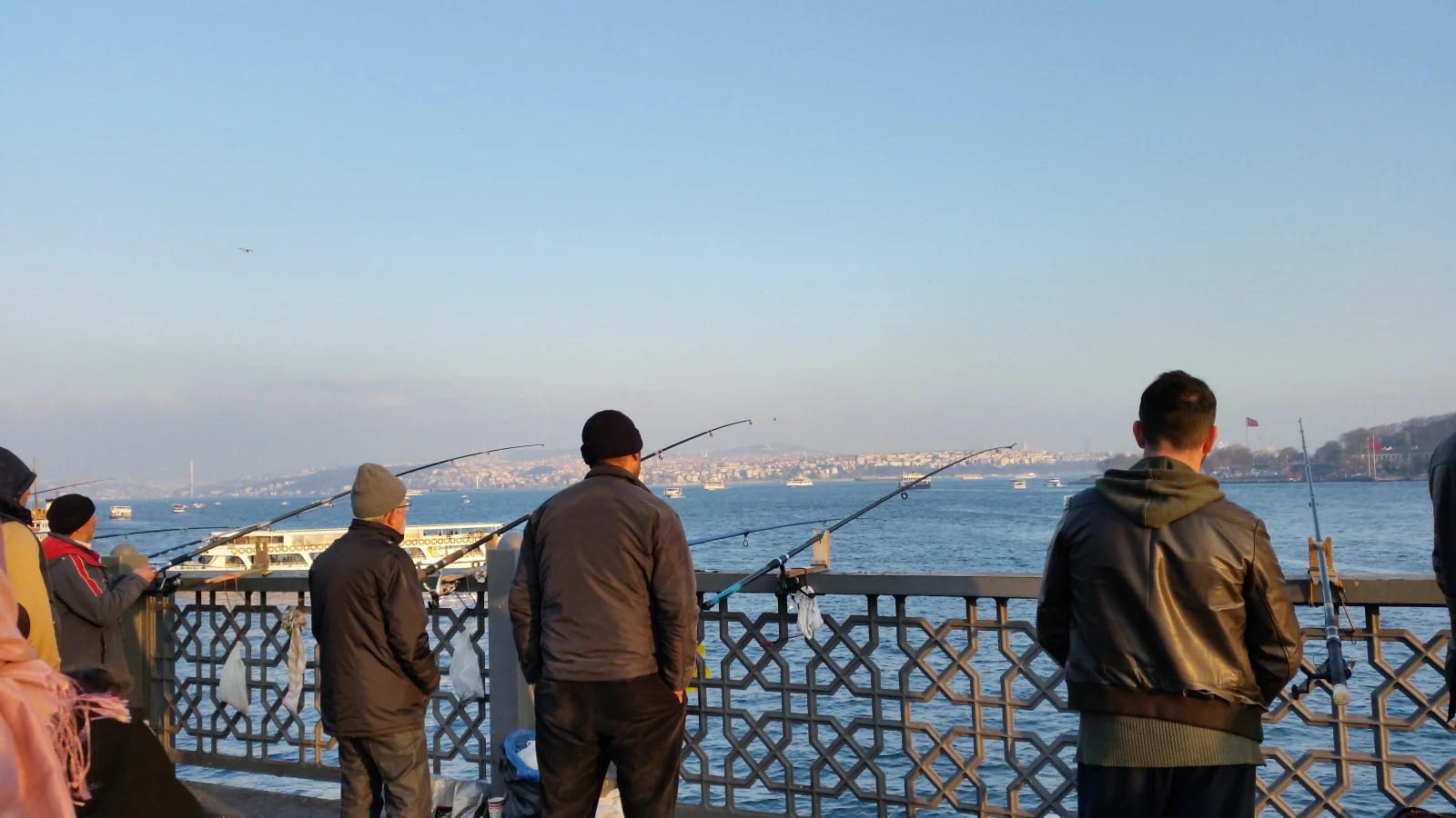 La Corne d’Or est la voie maritime qui s’enfonce dans les terres depuis le Bosphore. Le vieux Istanbul est au bord de la Corne d’Or au sud, tandis que la partie moderne de la ville se trouve de l’autre côté, vers le nord. On traverse la Corne d’Or via le pont de Galata, pont depuis lequel les pêcheurs font ce qu’ils font de mieux, c’est à dire pêcher. (D’ailleurs, c’est là qu’on trouve les meilleurs sandwichs de poissons du monde.)