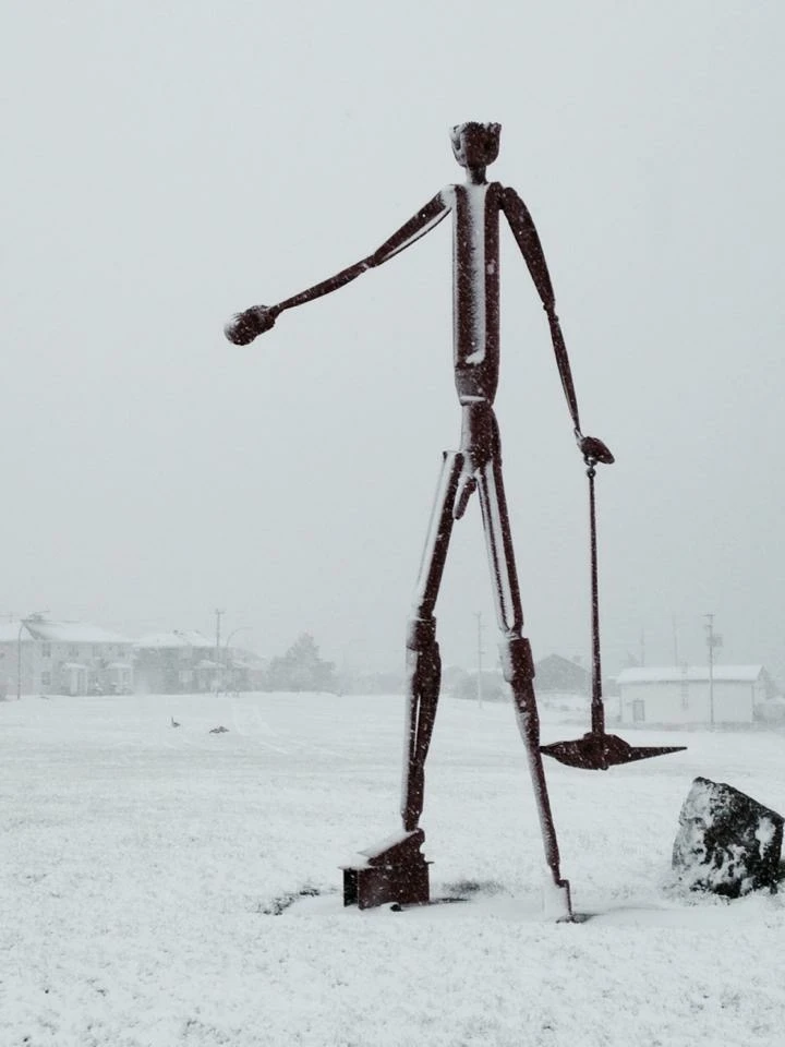 Comprendre ce que ça fait dans la tête, l’absence de bruit, les aurores boréales, les chemins de brosse qui ne mènent nulle part pis partout en même temps. Les «œuvres d’art» qui ont sans doute été permises par un maire su’a brosse (euh allô, le bonhomme à pissette? Pis dans les internets, ça ne dit pas qu’avant, ladite pissette était reliée à un mécanisme qui la faisait monter lorsqu’un chaudron attaché au bras du bonhomme se remplissait. La pissette a été soudée et le chaudron enlevé, mais ça reste drôle.