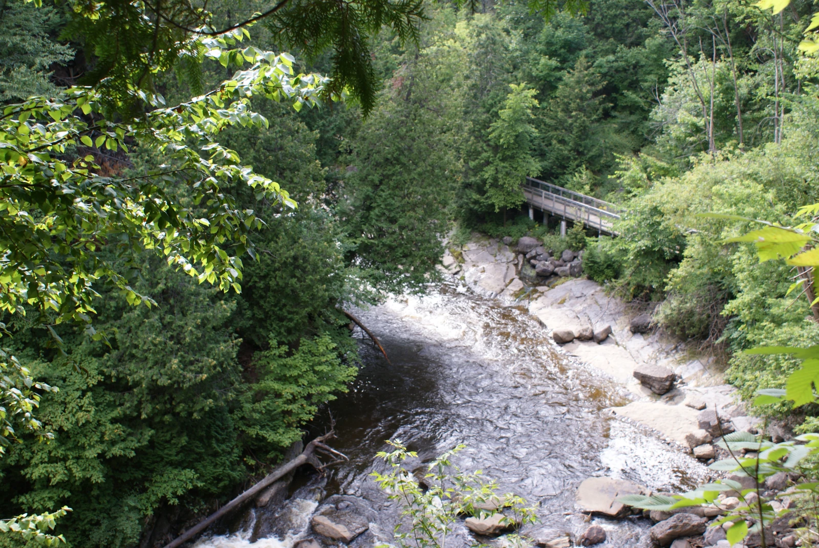 Le quartier Roreke, c’est autre chose. Le vieux village s’est construit sur les berges de l’Akiawenrahk, la rivière que les colons ont nommée Saint-Charles, même si personne sait c’est qui, au juste, et qu’il n’est jamais venu sur notre continent. Plus précisément, la communauté s’est développée aux abords de la chute Kabir Kouba et du canyon, barrière naturelle qui ceinture le village au Sud. J’ai passé mon enfance et mon adolescence sur le bord de la rivière, sur le sentier aménagé, puis du bord des Ursulines, à escalader l’escarpement sans regarder derrière. Tu repenses à ça une fois adulte, pis tu voudrais pas que tes enfants fassent des conneries de même. Pas pour rien qu’on a installé des clôtures. En haut de la chute, sur le bord du pont qui mène à Loretteville, il y avait l’ancien garage Beaulieu. C’était plus ou moins désaffecté; on rôdait là. Aujourd’hui, c’est la place Onywahtehretsih. On y trouve une fontaine pis des bronzes de Christine Sioui Wawanoloath, une artiste extraordinaire qui a illuminé ma jeunesse pis avec qui, une fois adulte, j’ai eu l’occasion de travailler à quelques reprises.