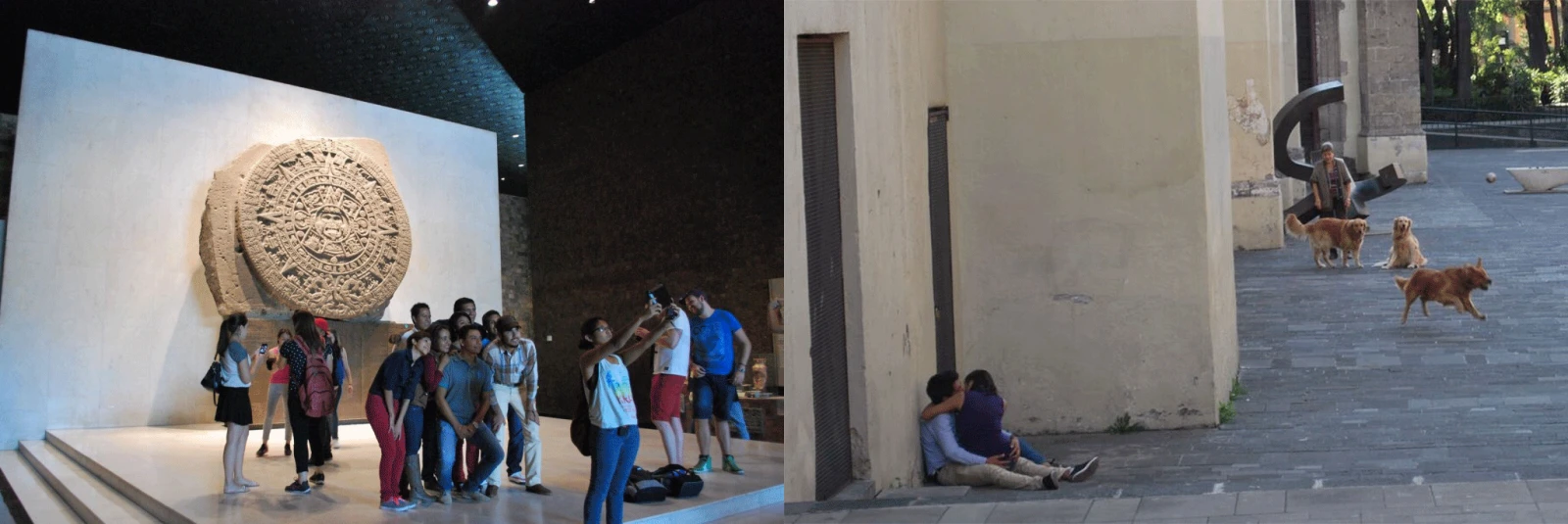 Les jeunes Mexicains et les jeunes Québécois sont des modèles d’humains à peu près identiques. Le selfie se fait aller même devant la pierre du soleil aztèque (souvent prise pour un calendrier aztèque) et le selfie stick (communément appelé Palo Selfie) est interdit à plusieurs endroits. Par contre, j’ai remarqué que l’échange salivaire est pratiqué en public avec beaucoup de passion. Les jeunes en sont les principaux adeptes, mais les personnes d’un certain âge se frenchent aussi parfois le fond de la gorge en se tripotant les rondeurs dans les endroits les plus visibles et les moins aphrodisiaques, comme au milieu d’un flot incessant de milliers de personnes odorantes de fin de journée qui essayent de changer de ligne de métro sans s’enfarger dans ces couples amoureux. Cela dit, personne ne s’en formalise, et ç’a quelque chose d’émouvant.