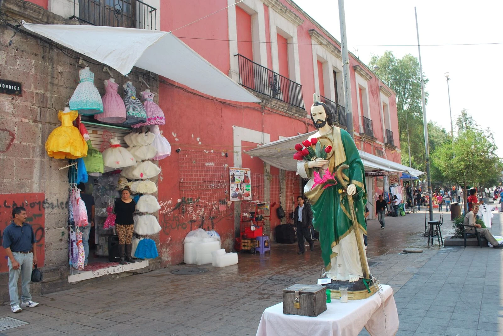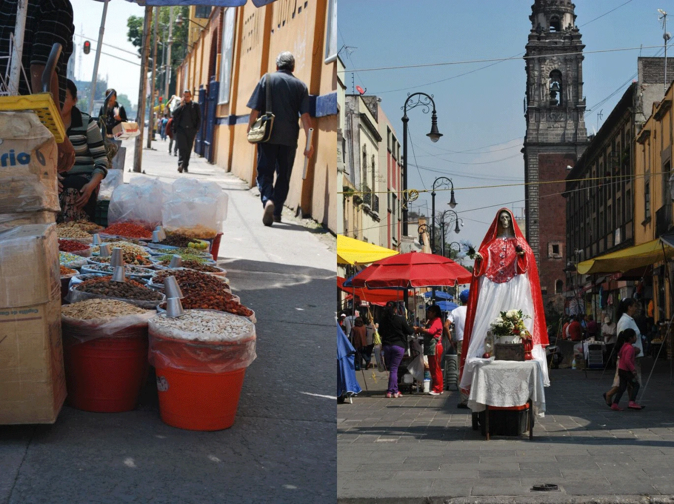 Si vous entretenez une passion gogosses et doudous comparable à la mienne, vous allez mourir de plaisir à Mexico. Surtout au marché de la Ciudadela. Il y a DE TOUTE. Beaucoup de sacs et de vêtements que les Mexicains ne portent pas pantoute, mais qui auront l’air tendance à l’extérieur du Mexique, beaucoup de sculptures magnifiques faites à la main, un bon marché de bling-bling et de cuir (prononcez queer pour faire plus frenchy/anglo/hispanoperdu), une tonne de masques de luchadores, des COUVÂRTES tissées extraordinairement peu chères et belles, des représentations de toutes formes de Catrina (la madame squelette) et j’en passe. C’est tellement pas cher et tellement beau que ça donne envie de redécorer toute sa vie.