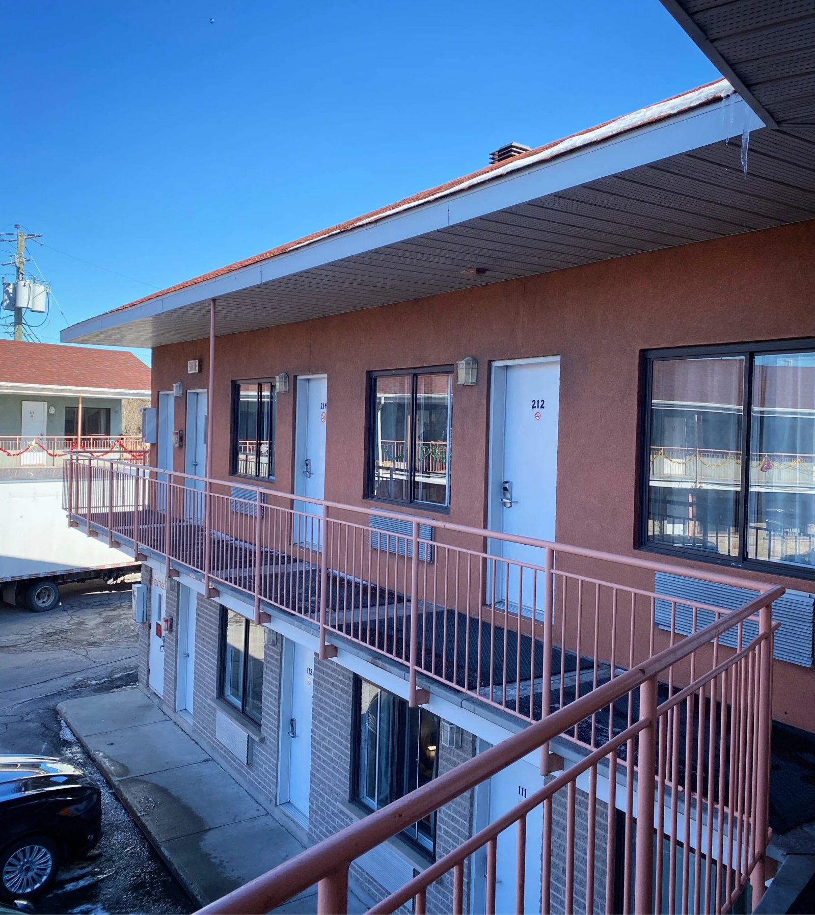 Les chambres situées au fond du stationnement sont réservées pour les longs séjours. Elles sont moins chères que celles de la section où habite Antoine, soit 1200$ par mois.