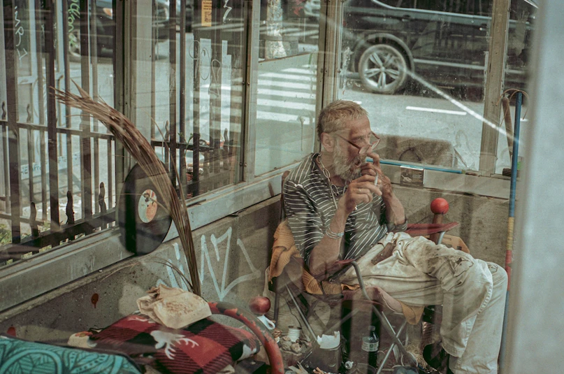 Gilles, un autre pilier de la rue Saint-Viateur, dort la nuit dans l’abribus. Les deux hommes partagent un café ensemble, échangeant ainsi le relais au lever du soleil. Bien que Tibor préfère dormir dans un refuge du centre-ville, où il bénéficie du confort d’un lit, il estime que le morose de l’endroit broie ses locataires : « Il n’y a rien à faire toute la journée autre que regarder les mêmes sitcom. Ici, la rue est ma télévision », commente-t-il en observant deux camionneurs s’envoyer des effluves de politesses dans le smog d’après-midi.