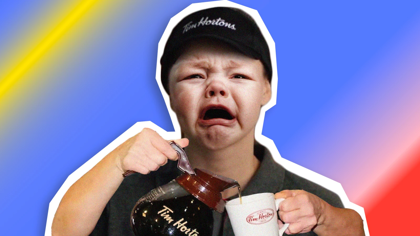 Cette photo d’un mineur souriant à la fenêtre du Tim Hortons comme Juliette sur son balcon de Vérone a mis le feu aux poudres des retweeteux et retweeteuses.