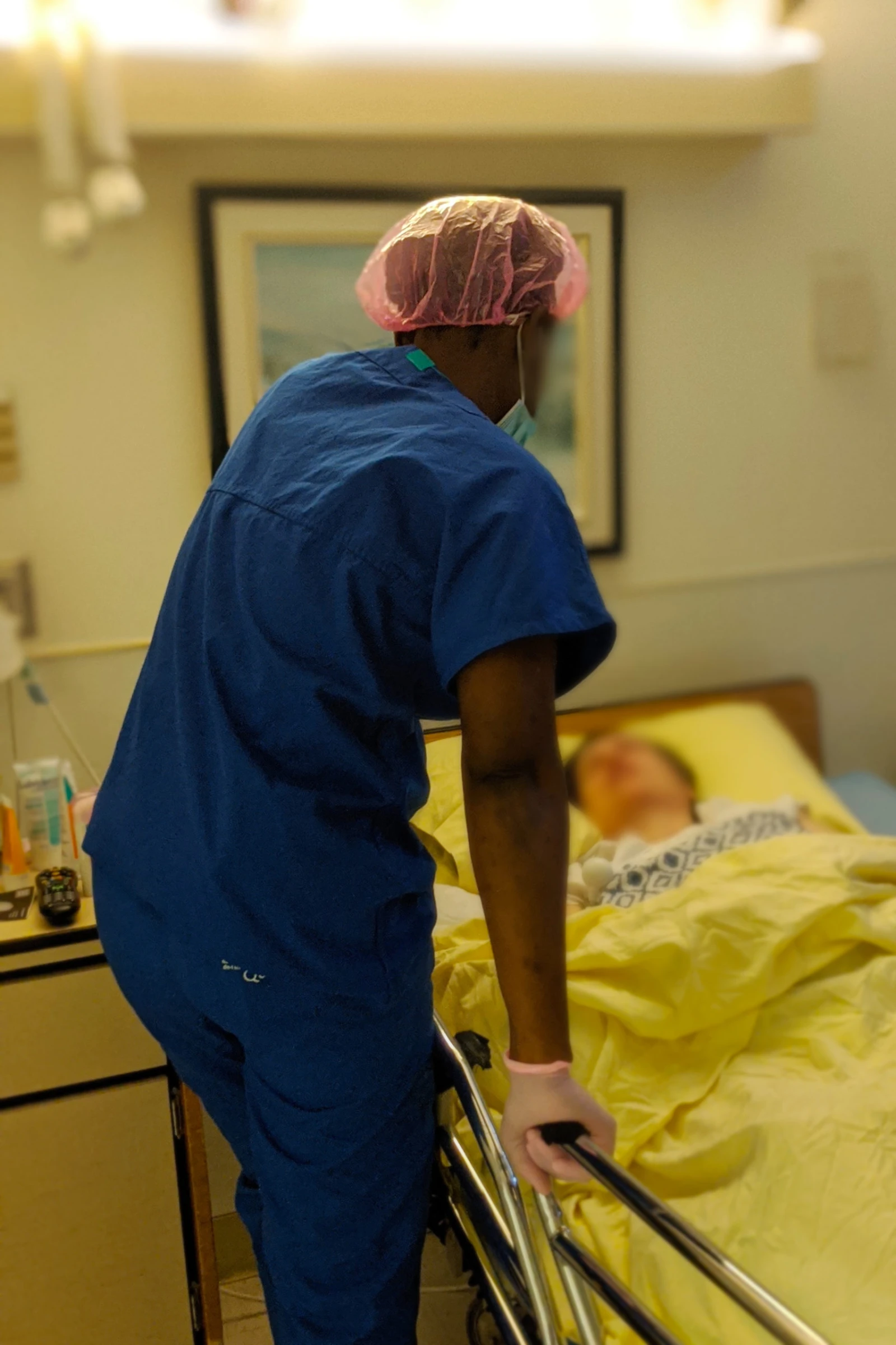 La coordonnatrice d’unité qui gère les étages neuf, dix et onze me jumèle à Marie, ma collègue sur l’étage pour la soirée. « Le métier de préposé aux bénéficiaires, ça s’apprend sur le tas! », lance d’emblée l’employée, mère de deux enfants.