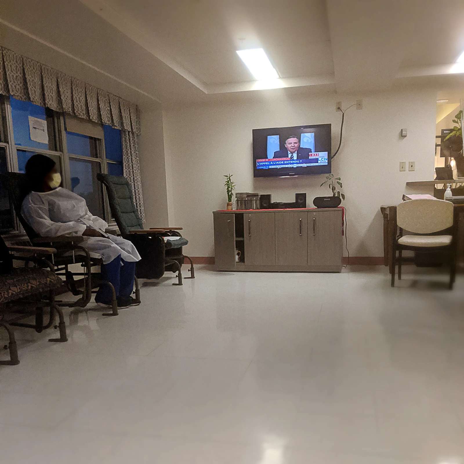 À TVA Nouvelles, qui joue en boucle sur les télévisions du Manoir, ça discute déconfinement. «C’est deux mondes parallèles ce qu’il se passe en CHSLD et dans le reste de la population.»