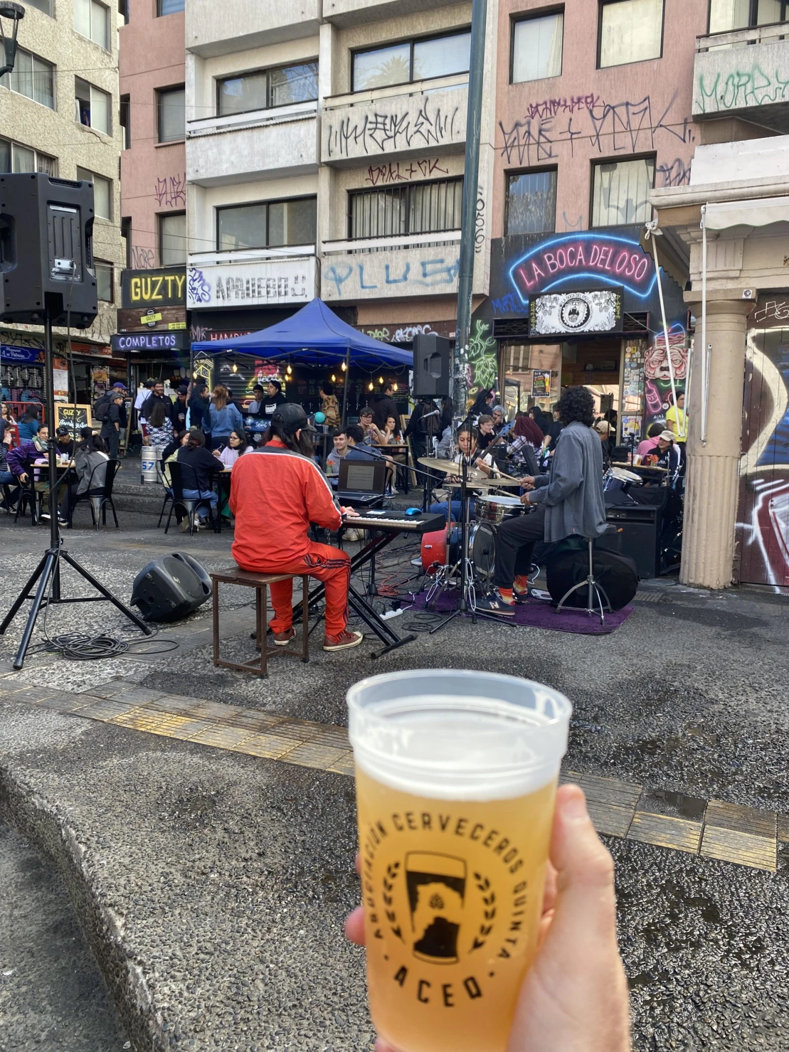 Parfois même, au carrefour de deux rues inclinées, des musiciens se relaient à tour de rôle et la bière coule à flots.