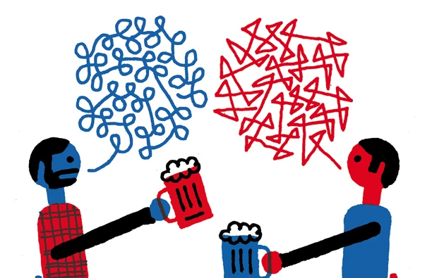 Il ne s’agit plus, pour l’anglophone qui souhaite vraiment s’intégrer, d’apprendre les bases du français et de savoir dire « merci beaucoup », « ce mets est délicieux » ou « j’ai apprécié ce spectacle ». Il lui faut se débrouiller, en compagnie des pea soup, avec un dialecte complexe, un melting pot verbal où se mêlent ici et là des vocables archaïques et des anglicismes parfaitement récupérés : personne ailleurs qu’au Québec ne sait ce que c’est que de branler dans le manche, expression probablement bûcheronne qui en dit long sur notre passé de colons. Si l’anglo souhaite vraiment s’imprégner et se pénétrer de « culture québ’ », il lui faudra, forcément, maîtriser quelques rudiments du joual. Sinon, y va spinner dans le beurre longtemps, pis pas à peu près.