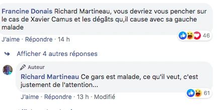 Camus jure viser le message et pas le messager. Il calcule avoir écrit des dizaines de statuts sur Richard Martineau ou Mathieu Bock-Côté sans jamais avoir employé l’étiquette « d’extrême-droite ». « C’est leur haine que je veux critiquer. Si Martineau m’écrit un matin pour me dire que finalement j’ai fait un bon coup avec Auclair et qu’il veut enterrer la hache de guerre, moi je suis prêt à aller prendre un café avec », s’engage Xavier Camus.