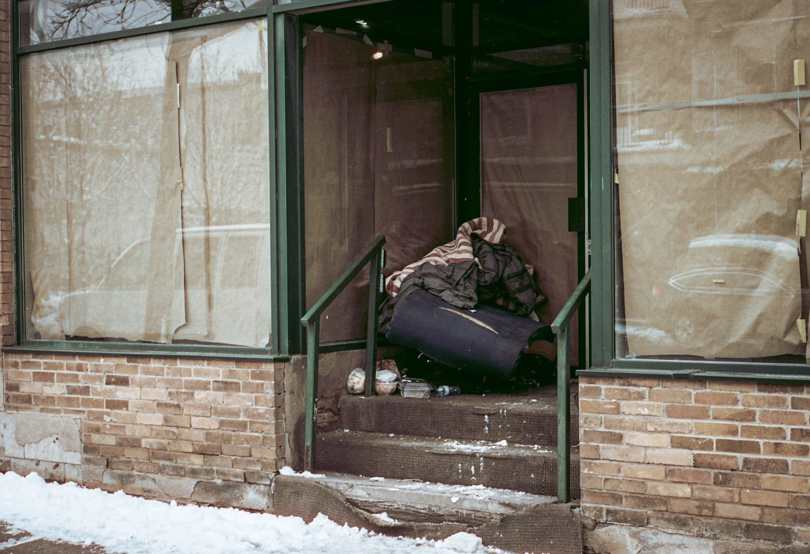 Il me pointe l’entrée de la boutique où il passe ses nuits, me vante la chaleur de ses bottes, de la propreté de son coin de trottoir qu’il pellette à chaque bordée. Cette devanture, c’est un peu la sienne.