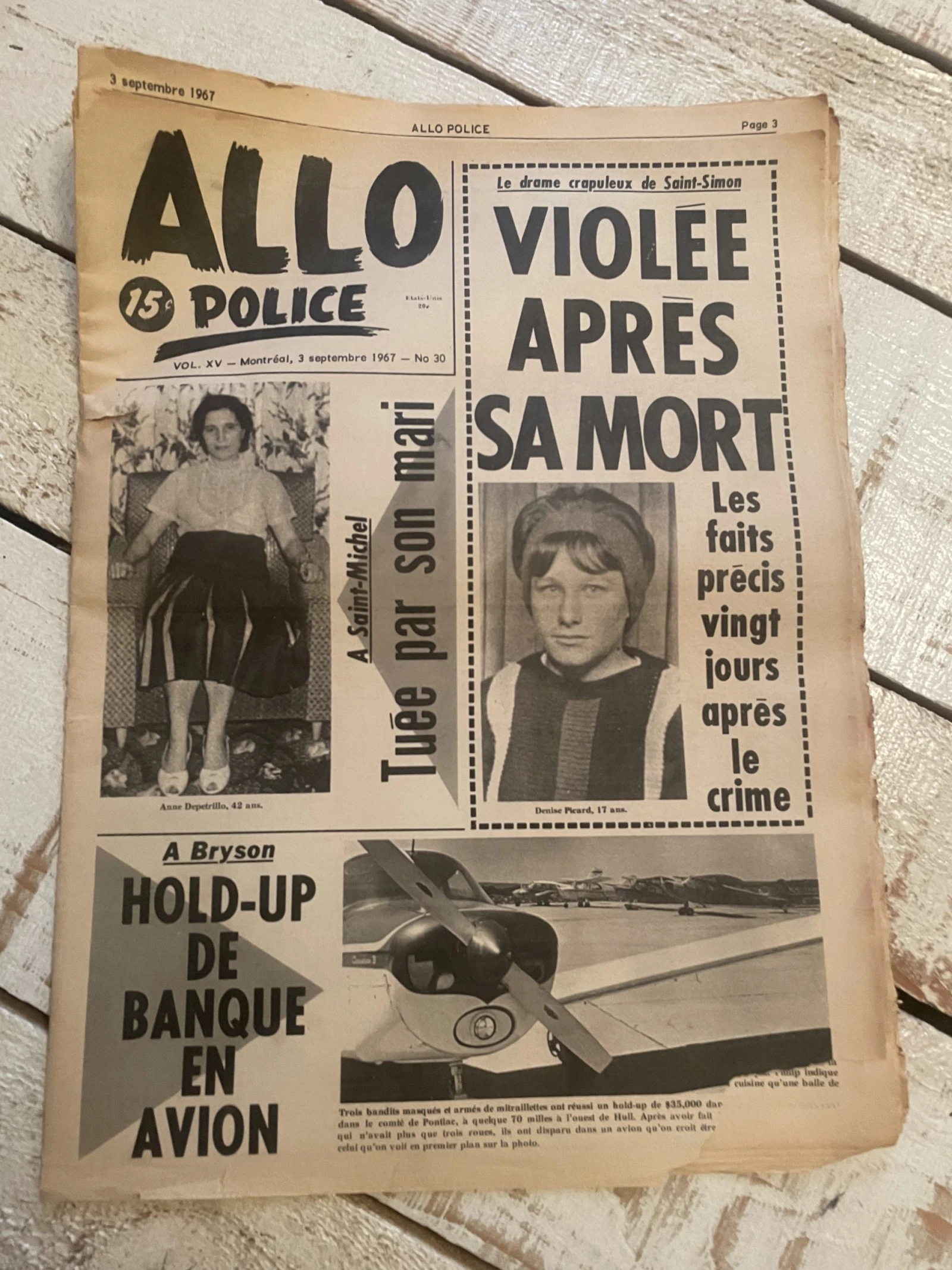 « Les titres sont toujours accrocheurs, avec ‘’maniaque sexuel’’ en gros, mais c’était ça, c’était un journal à sensation et ça a d’ailleurs encore sa clientèle », ajoute-t-il. Je lui donne comme exemple une page couverture de 1967, où l’on voit Denise Picard, 17 ans, sous un titre qui ne prend aucun détour : « VIOLÉE APRÈS SA MORT ». « Si la victime a été violée après sa mort, c’est vrai. C’est une réalité que la famille sait déjà. On n’était pas obligé de le dire, mais il n’en demeure pas moins que c’est un fait, et c’est tellement dégueulasse que ça vaut la peine d’être dit. C’est sûr qu’écrit de même, en gros… ça aurait pu être écrit dans le texte », analyse Stéphane.