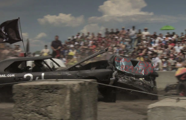 À la foire de Ormstown, on ne se contente pas des traditionnelles autos tamponneuses; au cours du derby de démolition, on se fonce dedans avec de vraies voitures, jusqu’à ce que plus rien ne fonctionne.