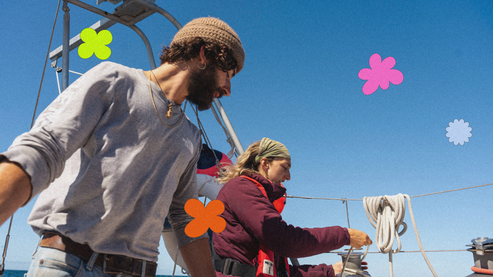 Émile navigue depuis son adolescence, initié par son père. Il a accumulé les expériences, les formations théoriques et les heures de navigation. Delphine, elle, a appris sur le tas. Elle a travaillé dans un camp de voile aux Îles, avant de se lancer dans ce grand projet à deux. Ensemble, ils apprennent à composer avec les imprévus, à faire confiance au vent, et à s’adapter, toujours.